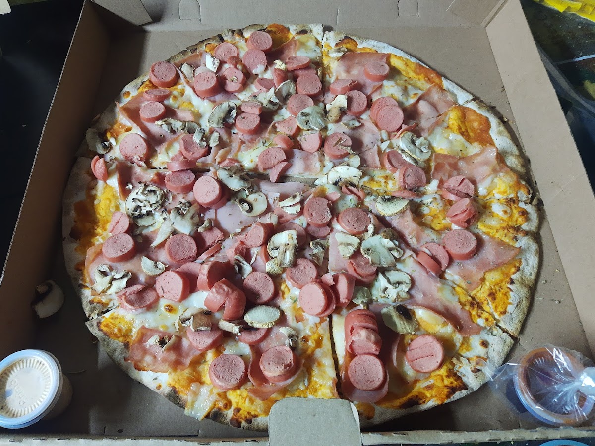 Muy ricas las pizzas y el precio es mejor, las pedimos a domicilio y llegaron súper rápido incluso con cambio. 10/10